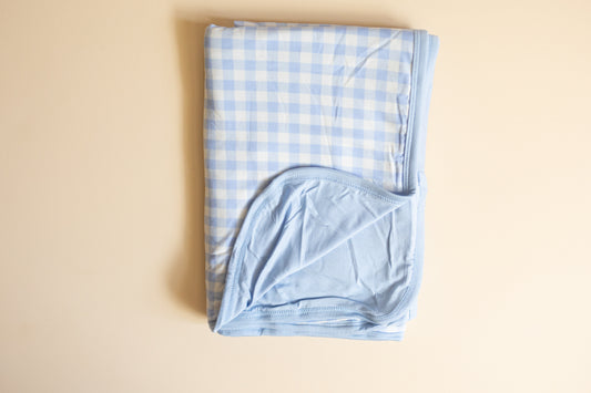 Blue Gingham Bamboo Blanket